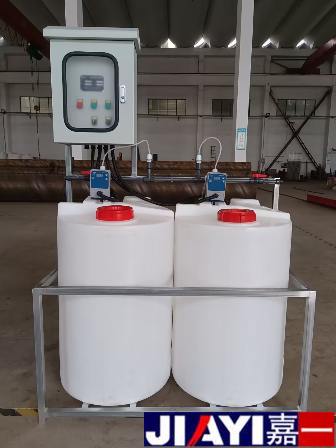 全自動加藥裝置采用時間程序控制,此控制方式無需儀表的支持,首先根據系統的運轉需要設定自動加藥的周期、加藥量、加藥時間和加藥頻率。在以后的系統運轉過程中,到加藥周期,計量泵自動打開加藥,加到規定的時間計量泵關閉;到排污周期,計量泵停止加藥,排到規定的時間后,計量泵繼續開啟,補充排污損失掉的藥劑,把系統的含藥量維持在正常的水平、加到規定的時間計量泵關閉。