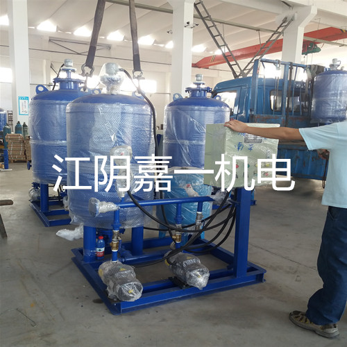 定壓補水裝置當氣壓水罐經過安裝驗收后,就可以對電接點壓力表上限P2,下限P1壓力數值進行整定,然后開始向氣壓水罐進行充水和充氣,上述工作完成后,便可接通電源開始供水。啟動水泵,向建筑管網和氣壓水罐水室內充水,由于水是不可壓縮液體,隨著水量的不斷增加,水室的體積也不斷擴大,囊形隔膜不斷向外擴張而積壓氣室,使其體積不斷縮小,管內的壓力也不斷增高,當達到設計壓力P2時,電接點壓力表指針碰到觸點,水泵則自動停泵。在水泵自動停止運轉的時間里,由于氣室被積壓的氮氣具有膨脹力,積壓囊形隔膜,使水室及管網的水具有一定的壓力,保證正常供給用戶用水。