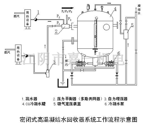 ①、閉式回收高溫凝結水,無二次閃蒸汽及疏水漏氣外冒,蒸汽冷凝水所包含的熱能、水量充分回收可使系統熱效率提高;