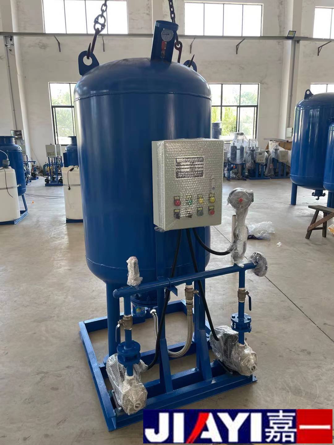 定壓補水機組由囊式壓力罐、水泵、控制箱、底架、壓力感應裝置、管道閥門等組合而成,是一種兼有升壓、調節、儲水、供水等多種功能的常用供水設備。